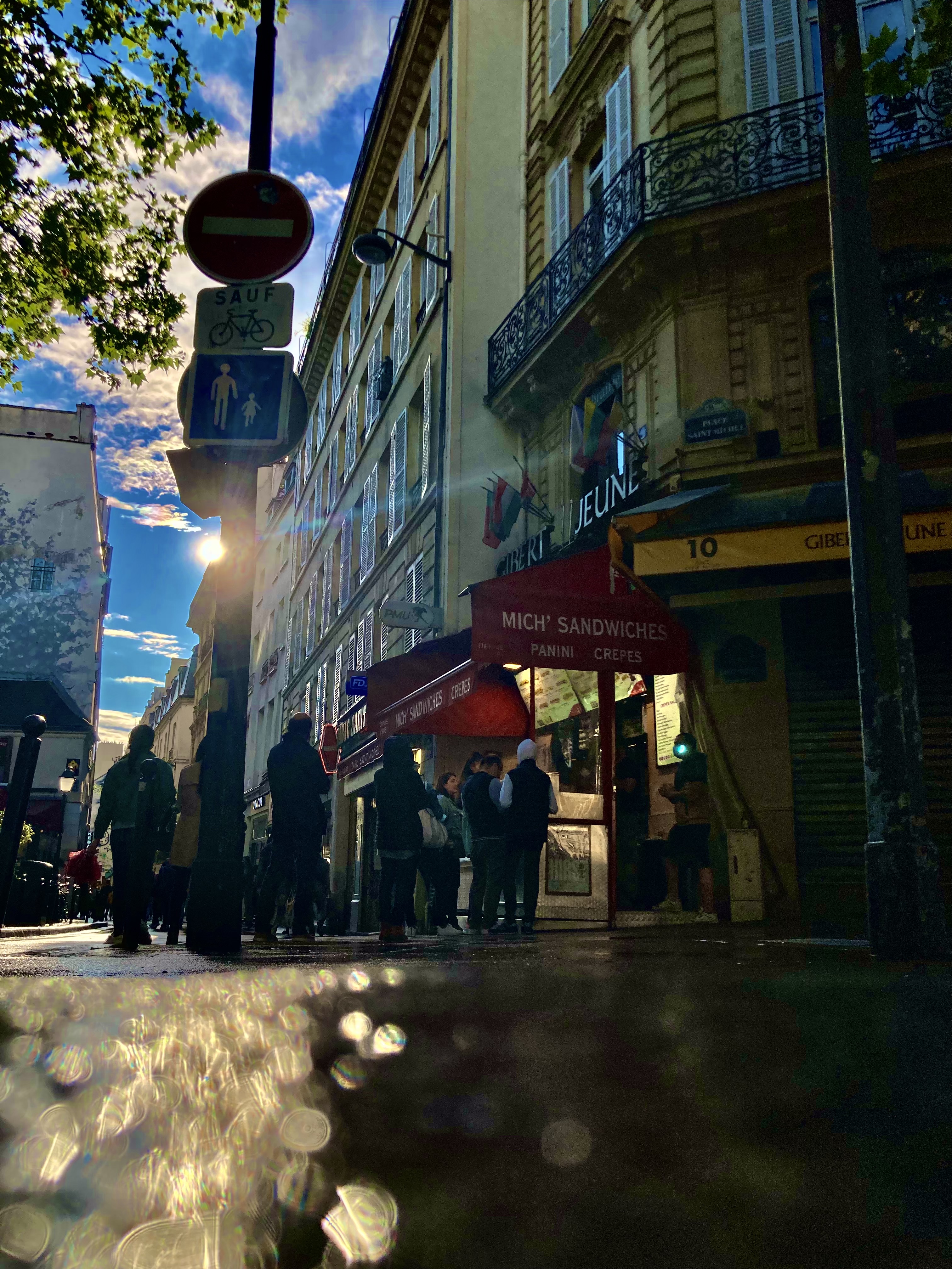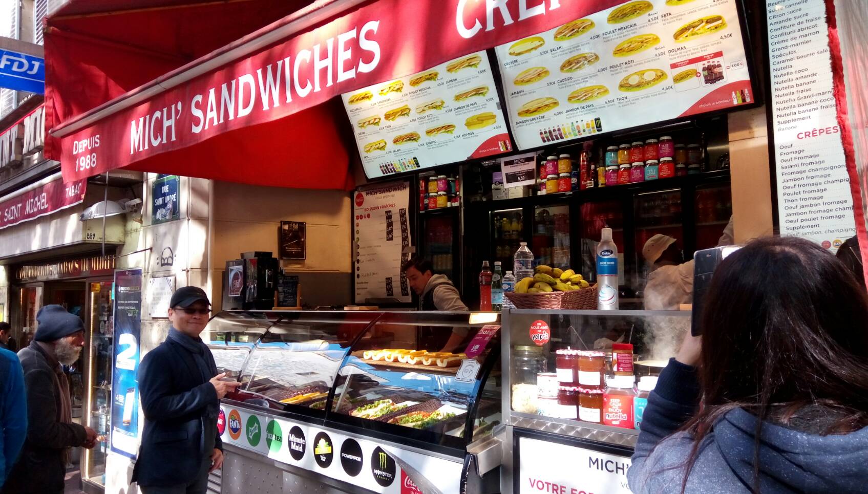 Une sandwicherie située au bord de la Seine, au coin de la fontaine Saint-Michel, c'est assez délicieux et fortement recommandé.
