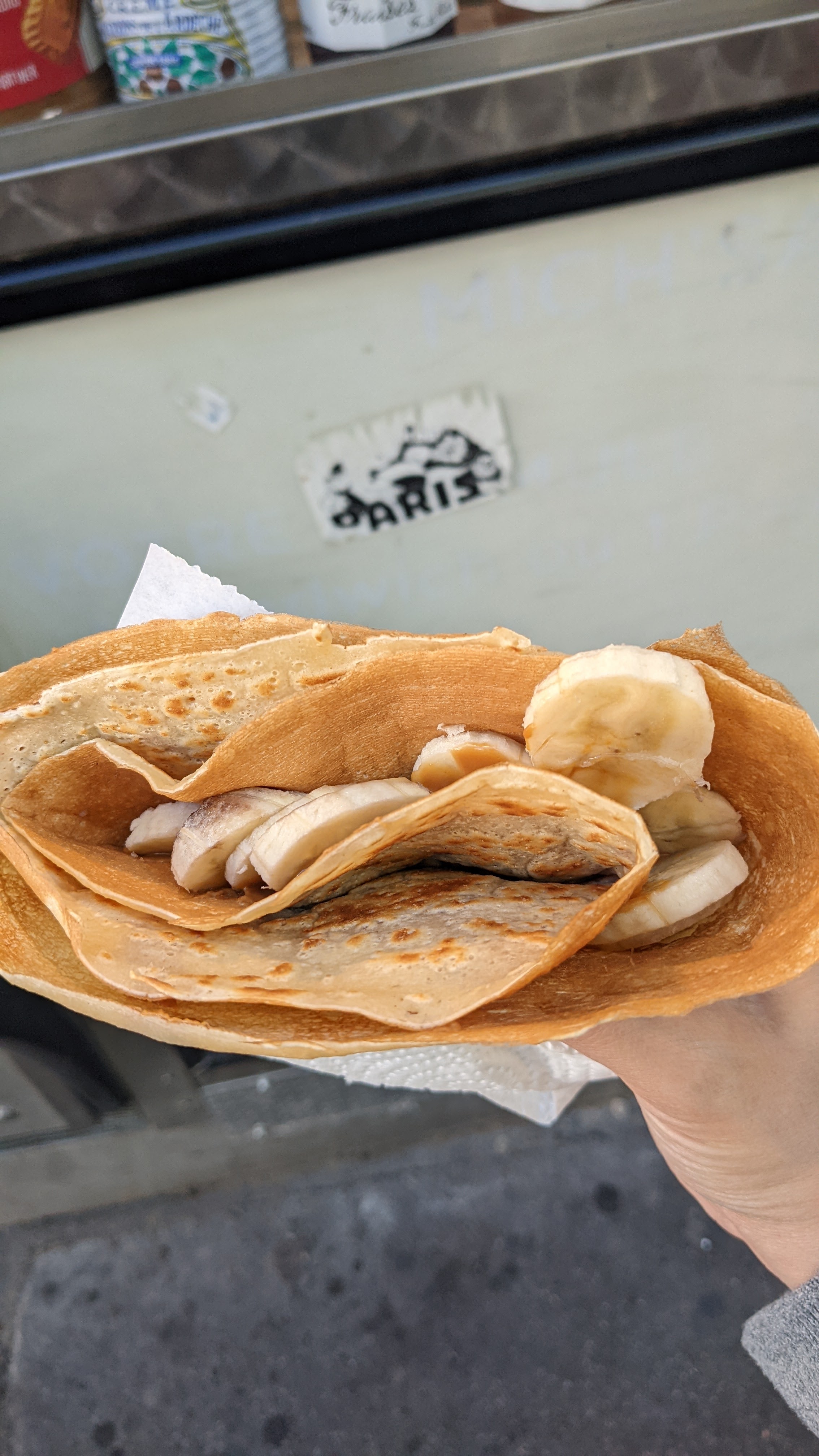 Je suis arrivé tôt pour ma visite près de la fontaine St Michel, j'ai donc pris une crêpe à la banane et au biscoff ici. C'était TELLEMENT délicieux ! Cela fait 3 mois que je n'ai pas mangé cette crêpe et j'y pense encore. 😋