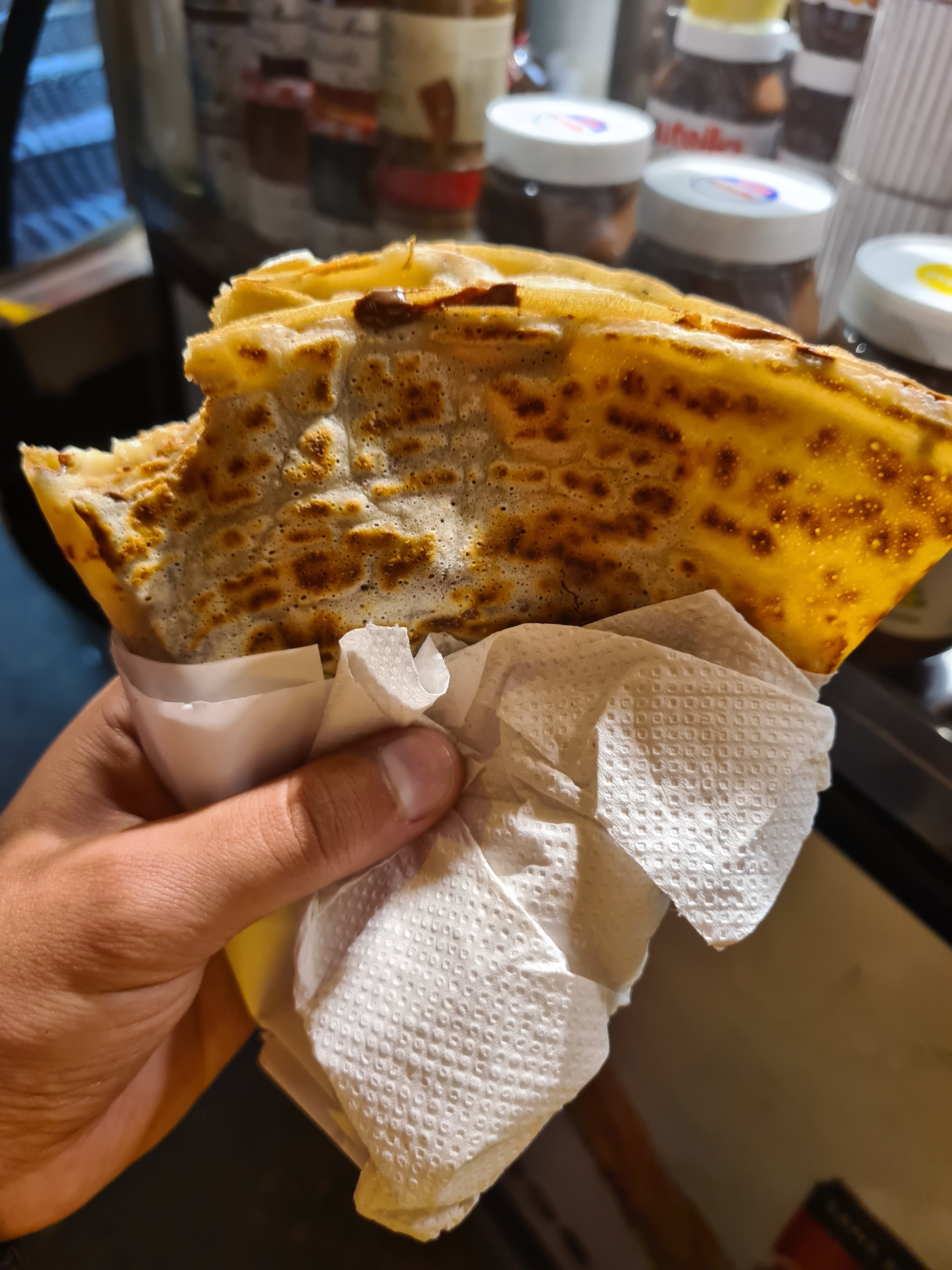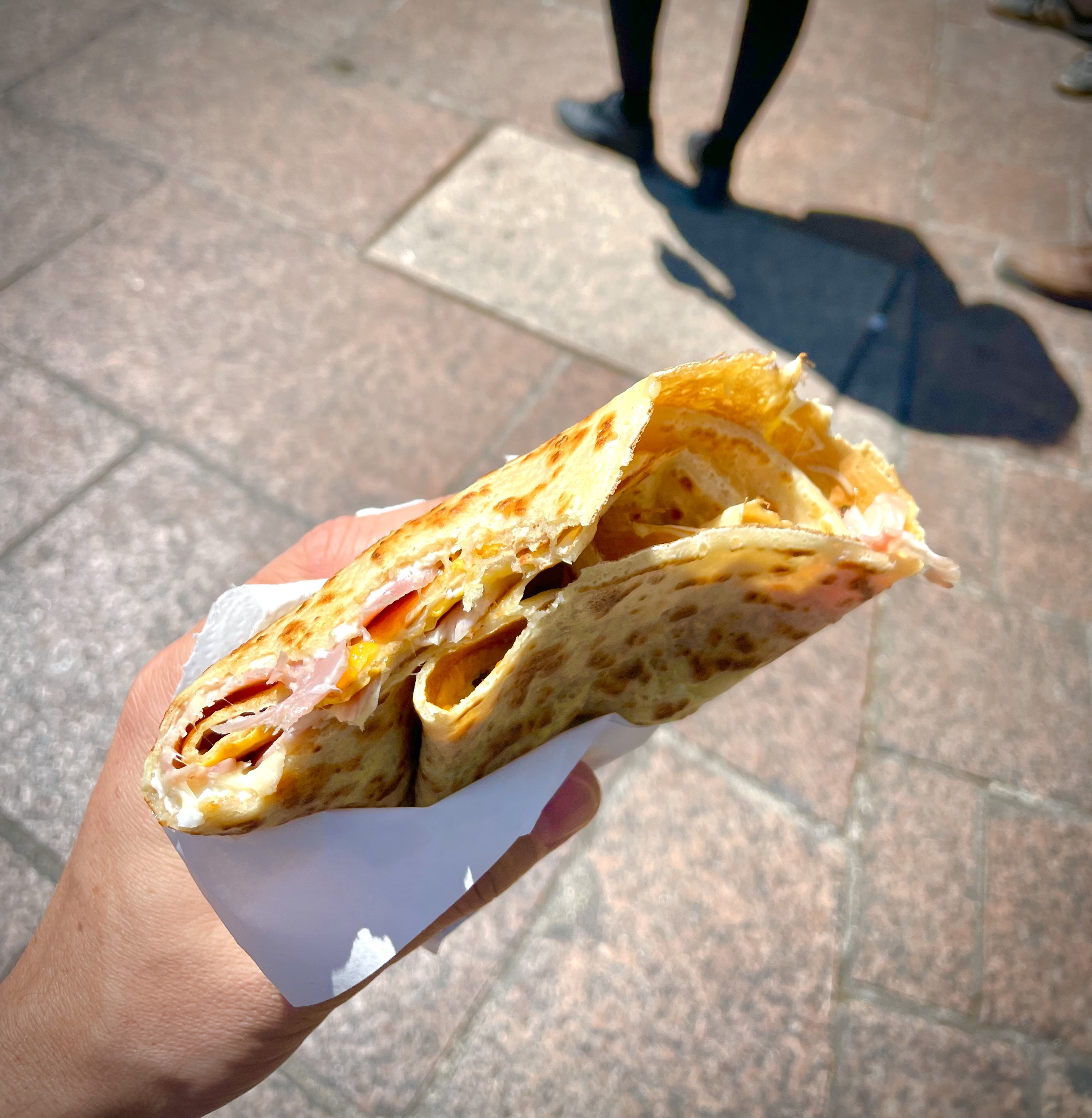 Pas de panini absurde pour le dîner. Je suis revenu plus tard pour essayer la crêpe aux œufs et au fromage, qui était excellente comme collation après le dîner.