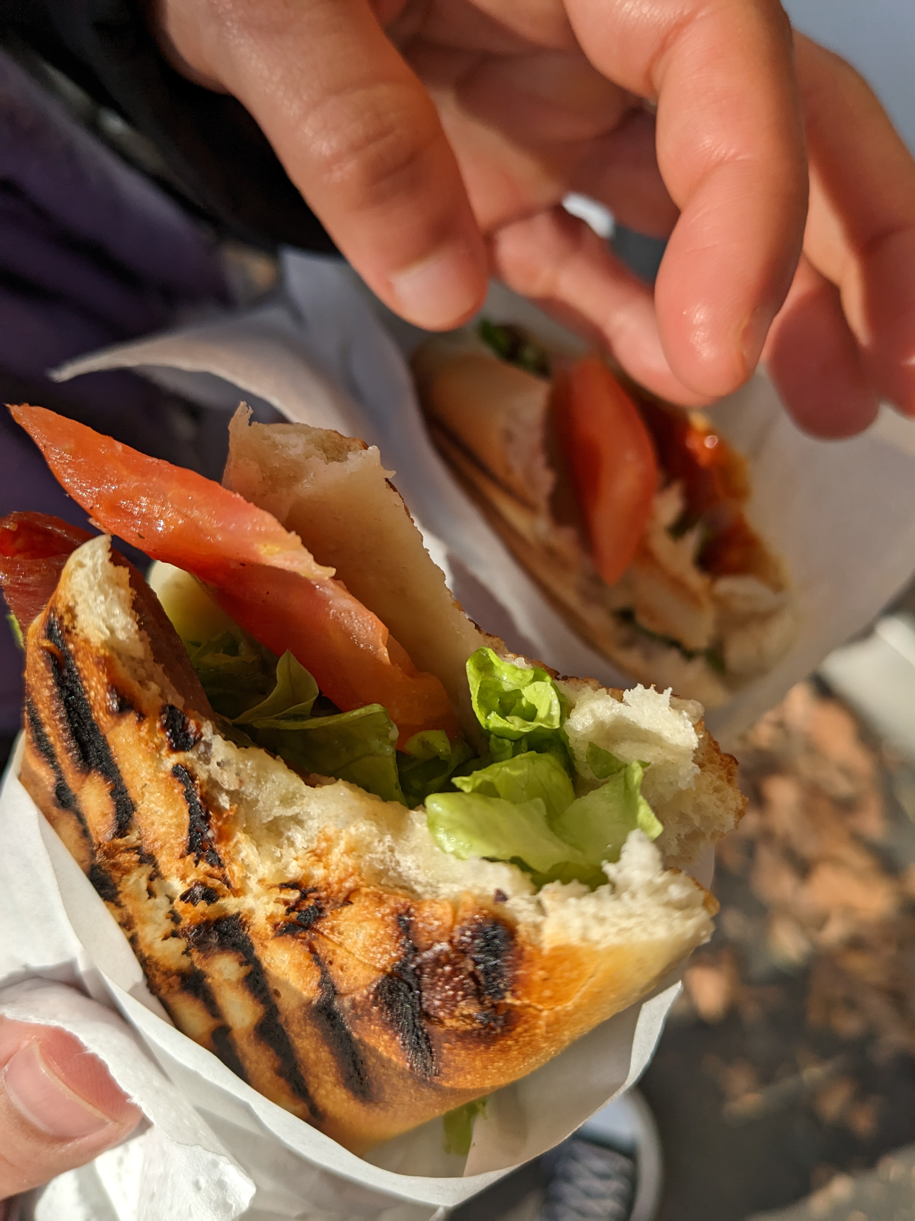 Délicieux sandwich. Ils sont à la rue donc c'est pour se sortir du pétrin. Ils ont aussi des crêpes très riches.