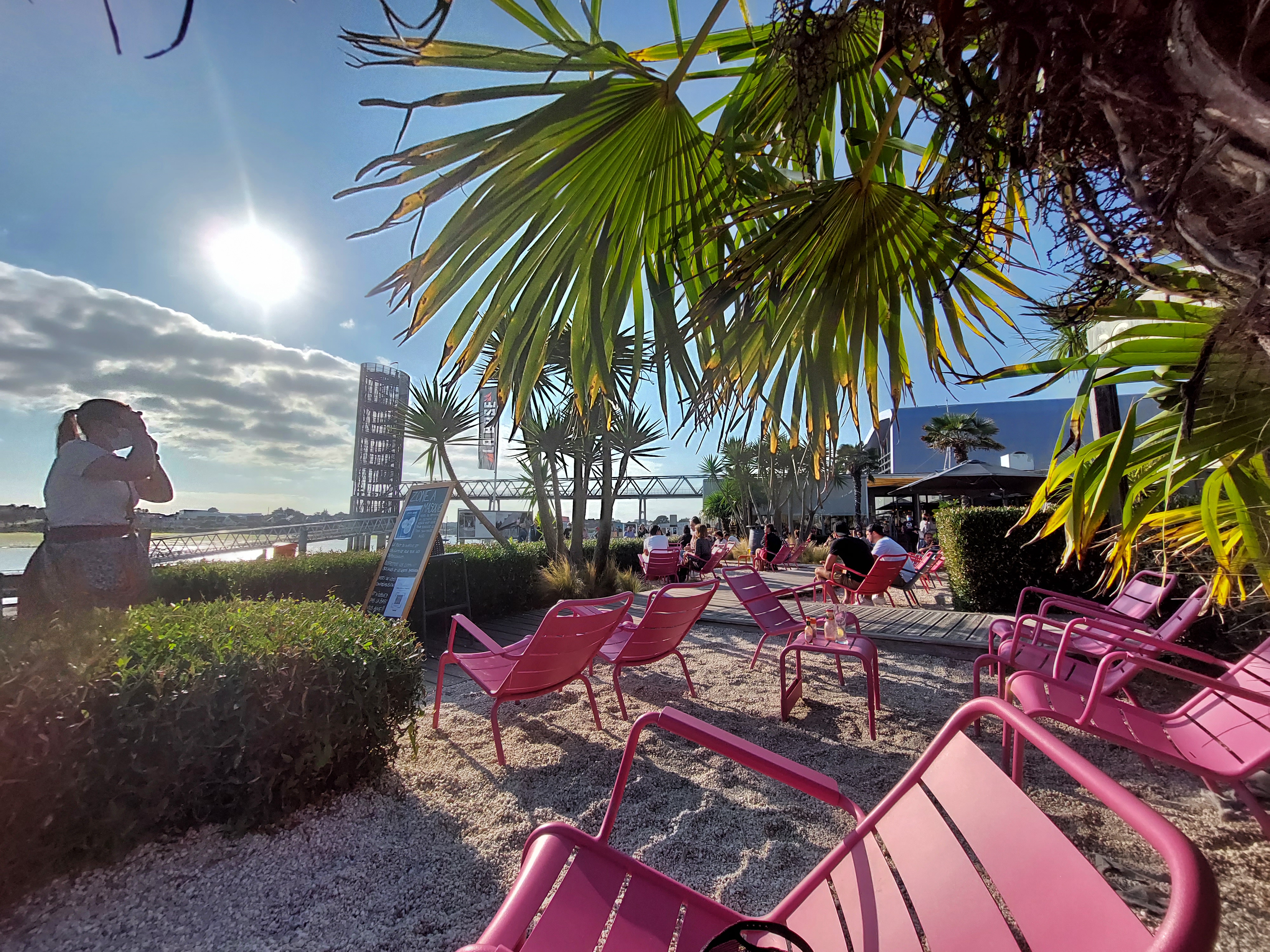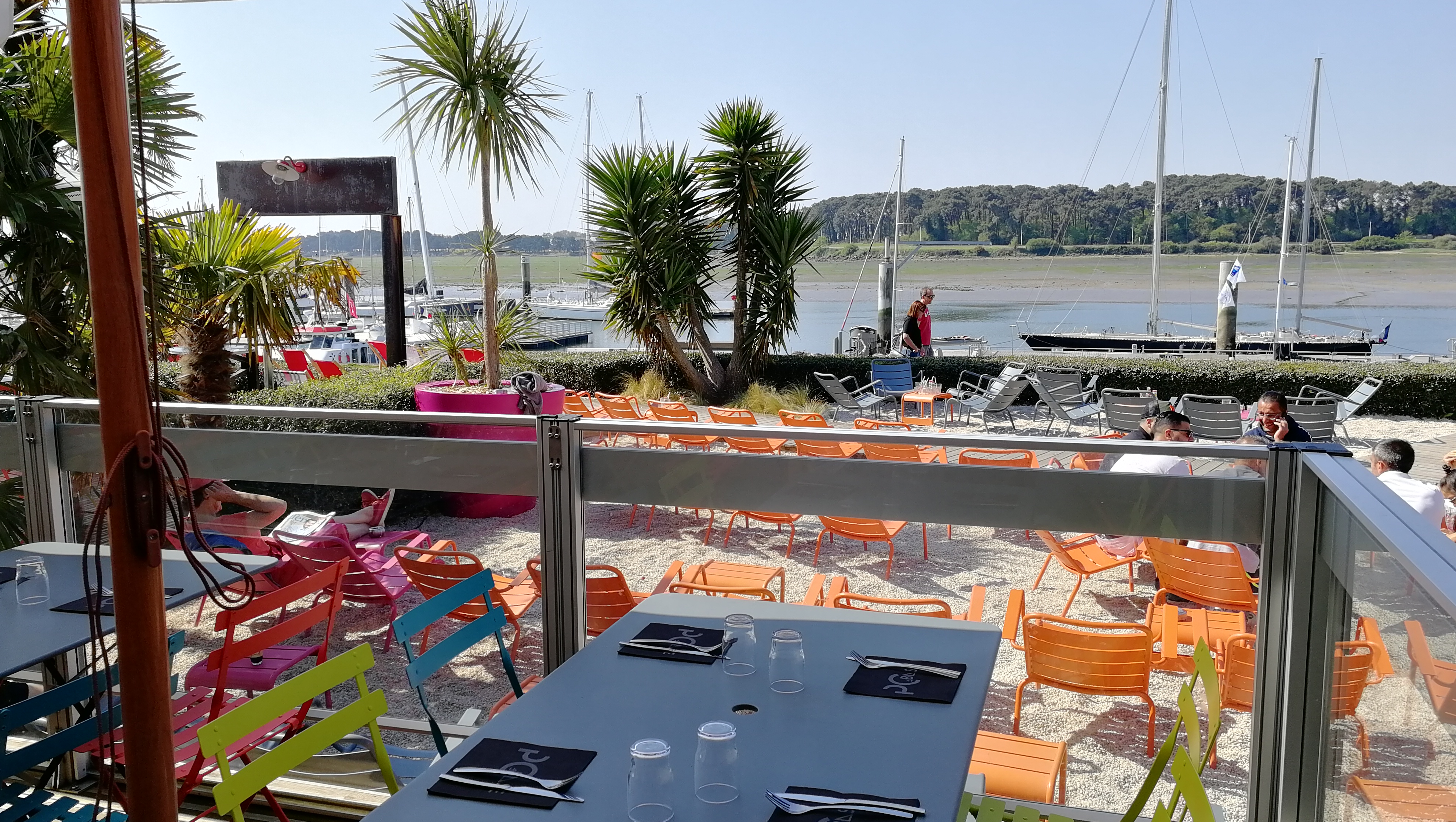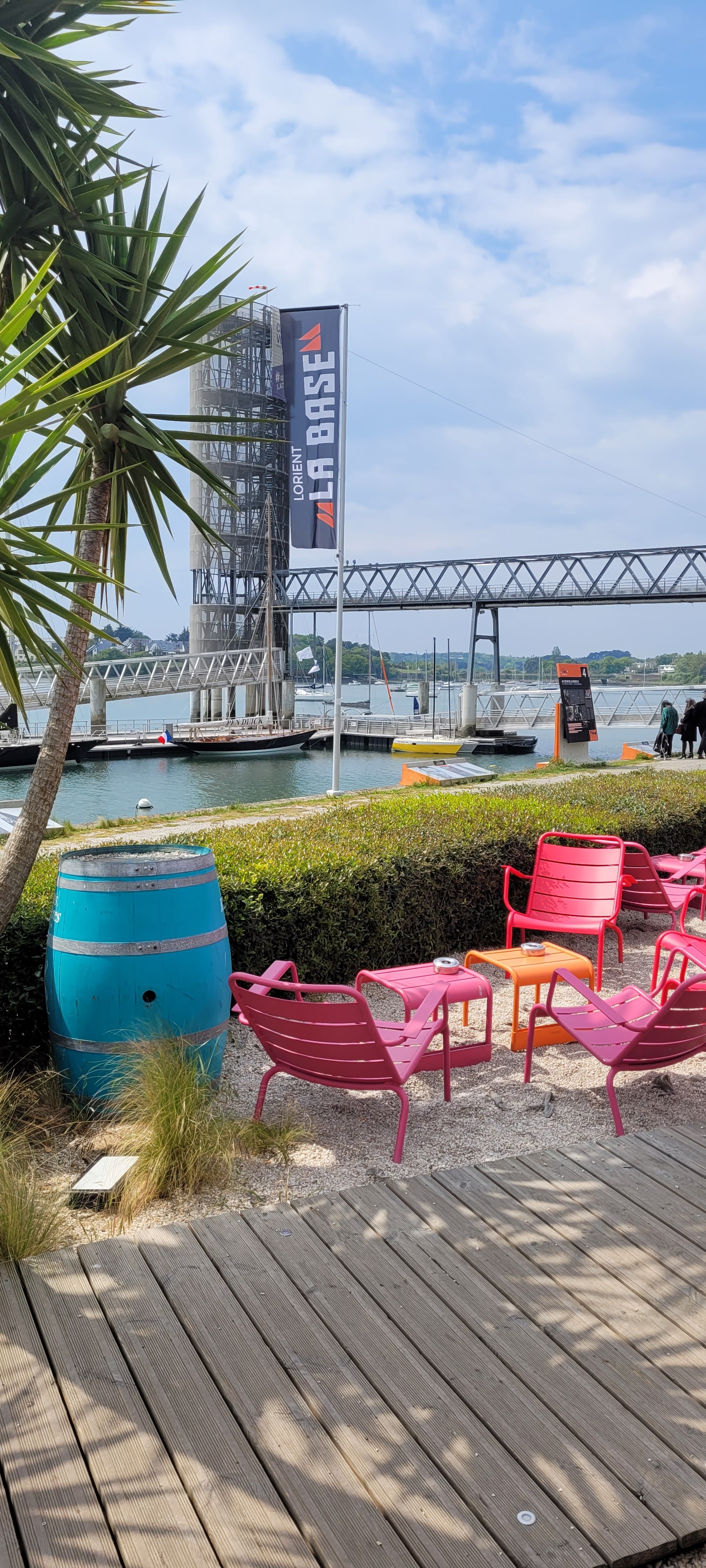 Superbe ballade à faire pour découvrir le ponton des multicoques de Lorient, les musées et les bars et restaurants Il faut aller justement se servir au bar et sentir passer l’addition pour quelques boissons, ça remet les pendules à l’heure... Superbe vue néanmoins bien enfoncé dans sa chaise rose en ferraille Plutôt bobo et bien fréquenté