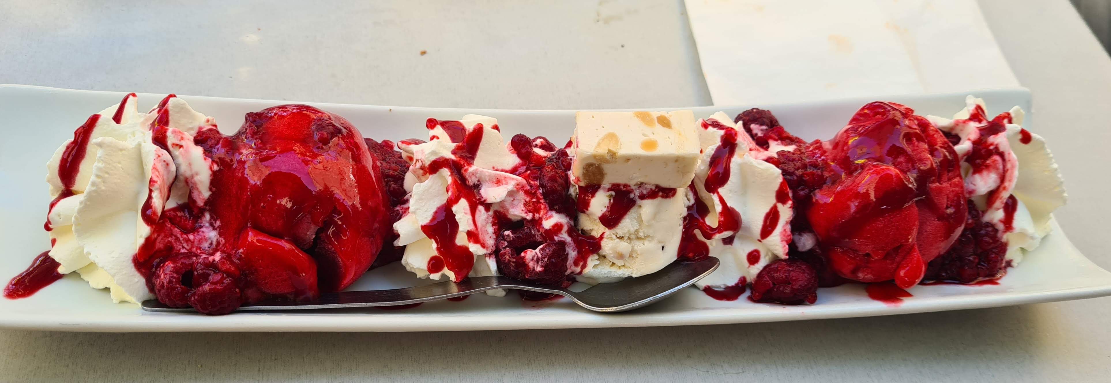 Venus pour une dame blanche, 2 diabolos fraise et une coupe 2 boules. Service plutôt rapide mais amabilité du personnel en terrasse à revoir. Ne pas savoir accueillir des clients anglais reste un point négatif… Apprenez à sourire 😄 La vie est belle. Néanmoins, la personne en caisse tres sympathique et avenante.
