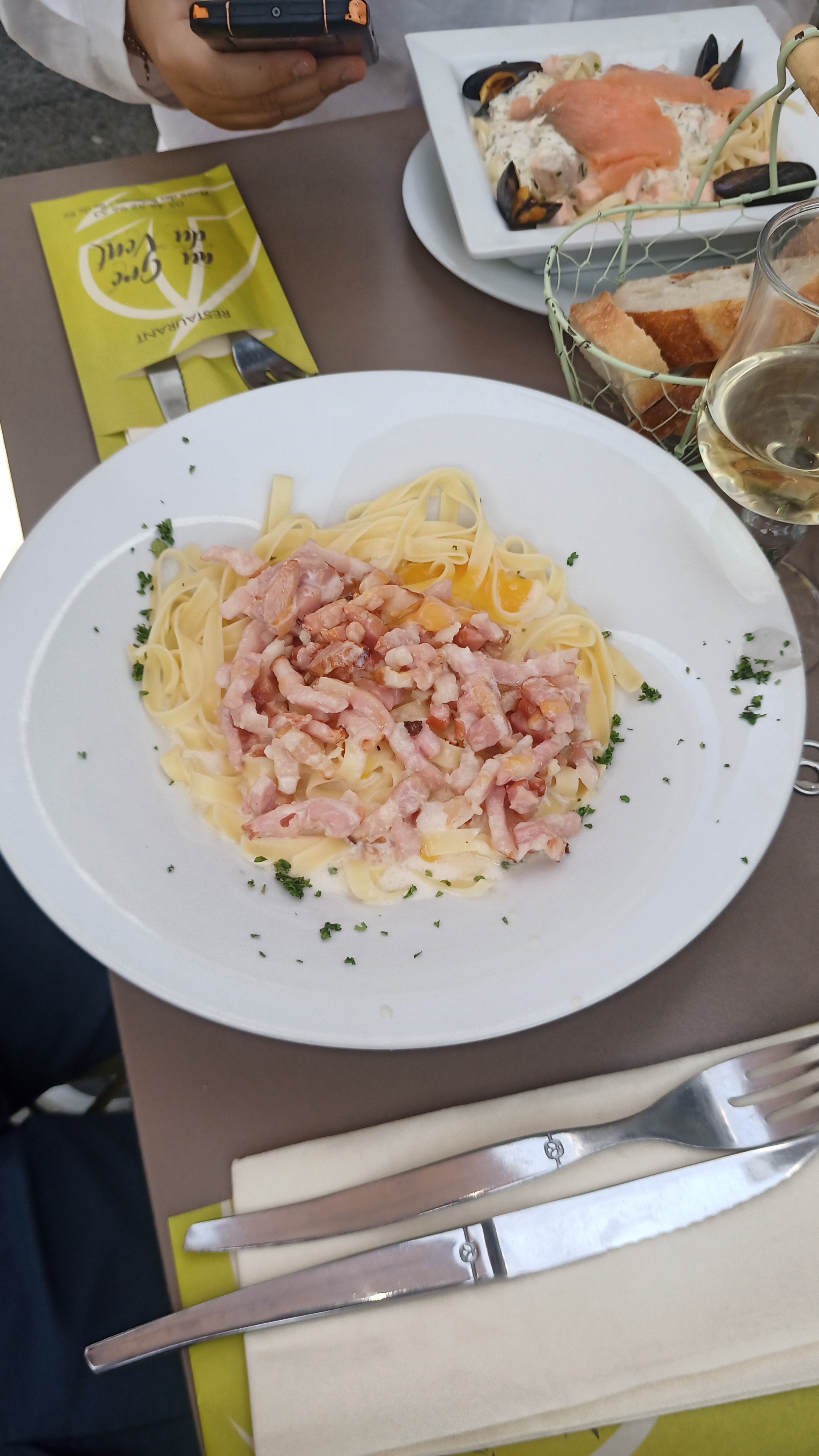 Nous avons été au resto Chez Marie (en face de la crêperie) et nous n’avons pas été déçus ! Un bon resto en famille, des serveurs très chaleureux et efficaces alors que nous étions une grande tablée, des plats corrects pour leur prix et une ambiance sympathique! Après une grosse matinée vélo, Chez Marie était idéal pour se restaurer le midi et enchaîner la suite!