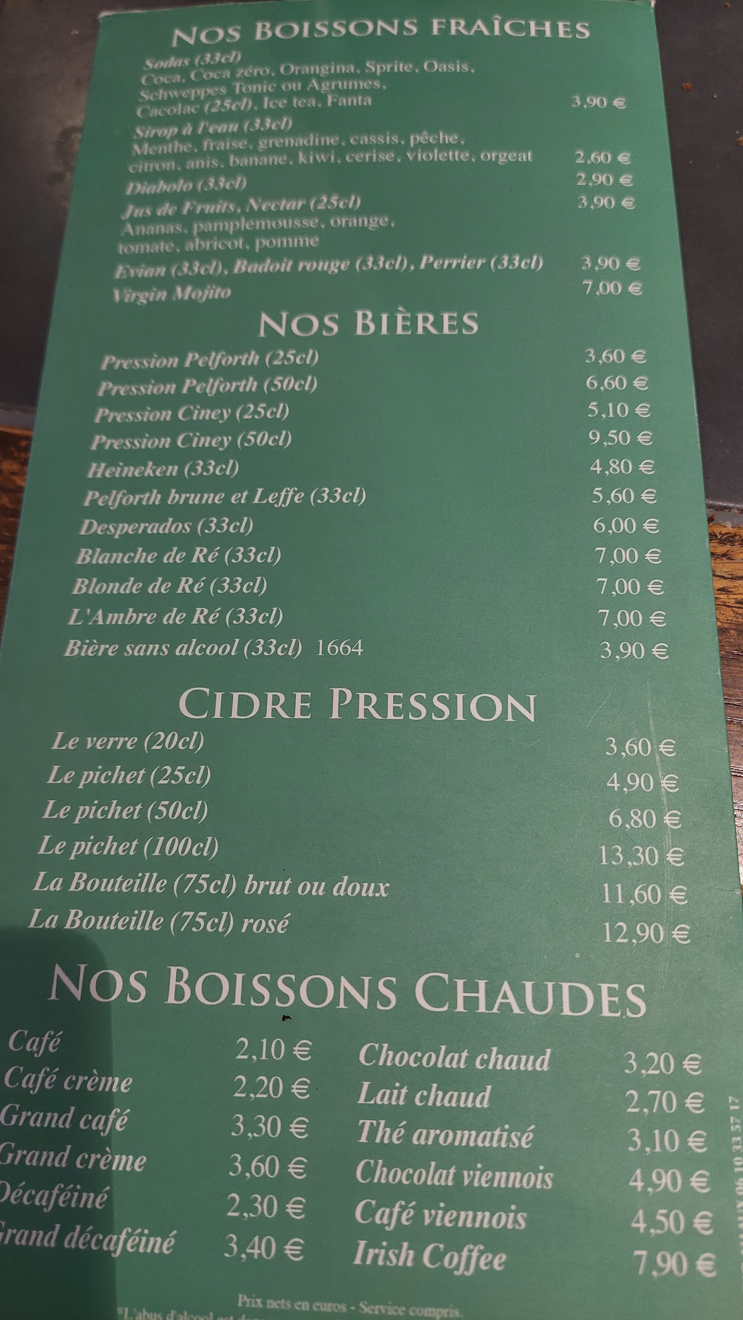 En visite du phare des baleines en amoureux, nous avons décidé de dîner ici ce soir. Surprise de lire autant de mauvais commentaire en voulant partager le mien je tenais simplement à dire que nous avons été bien accueilli, nous avons demander un changement de table suite à un courant d'air, cela n'a poser aucun soucis, le serveur a même pris le temps de nettoyer la seconde table pour que nous puissions nous installer. Aucune attente pour les boissons et service rapide aussi bien pour les plats que pour les desserts! Une bavette à l'échalote pour monsieur qu'il a adoré et un jambon cuit pour moi qui était tout aussi bon! La musique également appréciable car pas trop fort en volume. En bref nous avons vraiment apprécié notre repas chez Marie et nous reviendrons prochainement :)