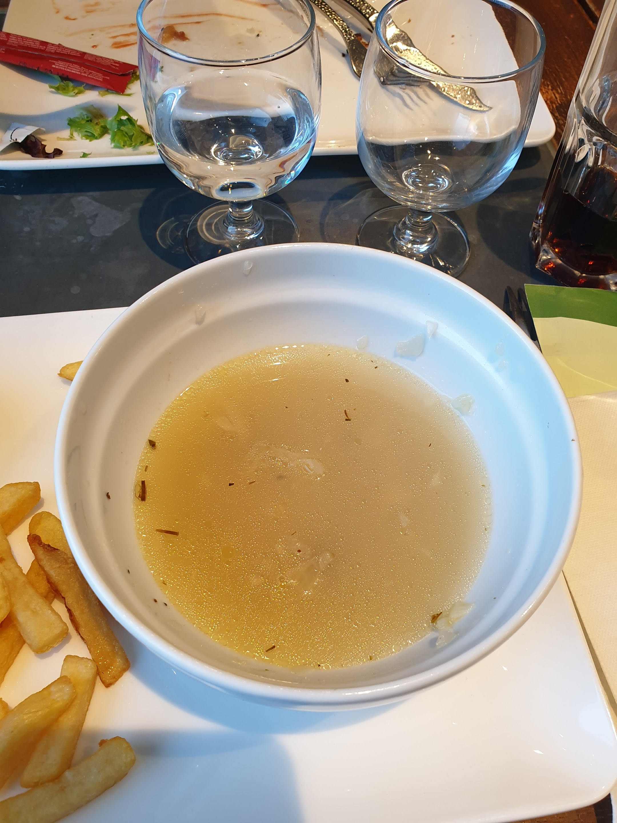 Personnellement un peu déçu. Extrêmement rapide. A peine l'apéro arrivé qu'ils nous servent l'entrée. Même pas pris le temps de boire l'apéro. Et puis nous avions pris le menu à 15 euros. Déçu aussi...pas grosse mangeuse, je suis sortie du restau limite. Je n'avais pas de jus dans les moules marinière, j'avais que de l'ail. A l'affût de passer au plat suivant , je me suis senti pressé de manger