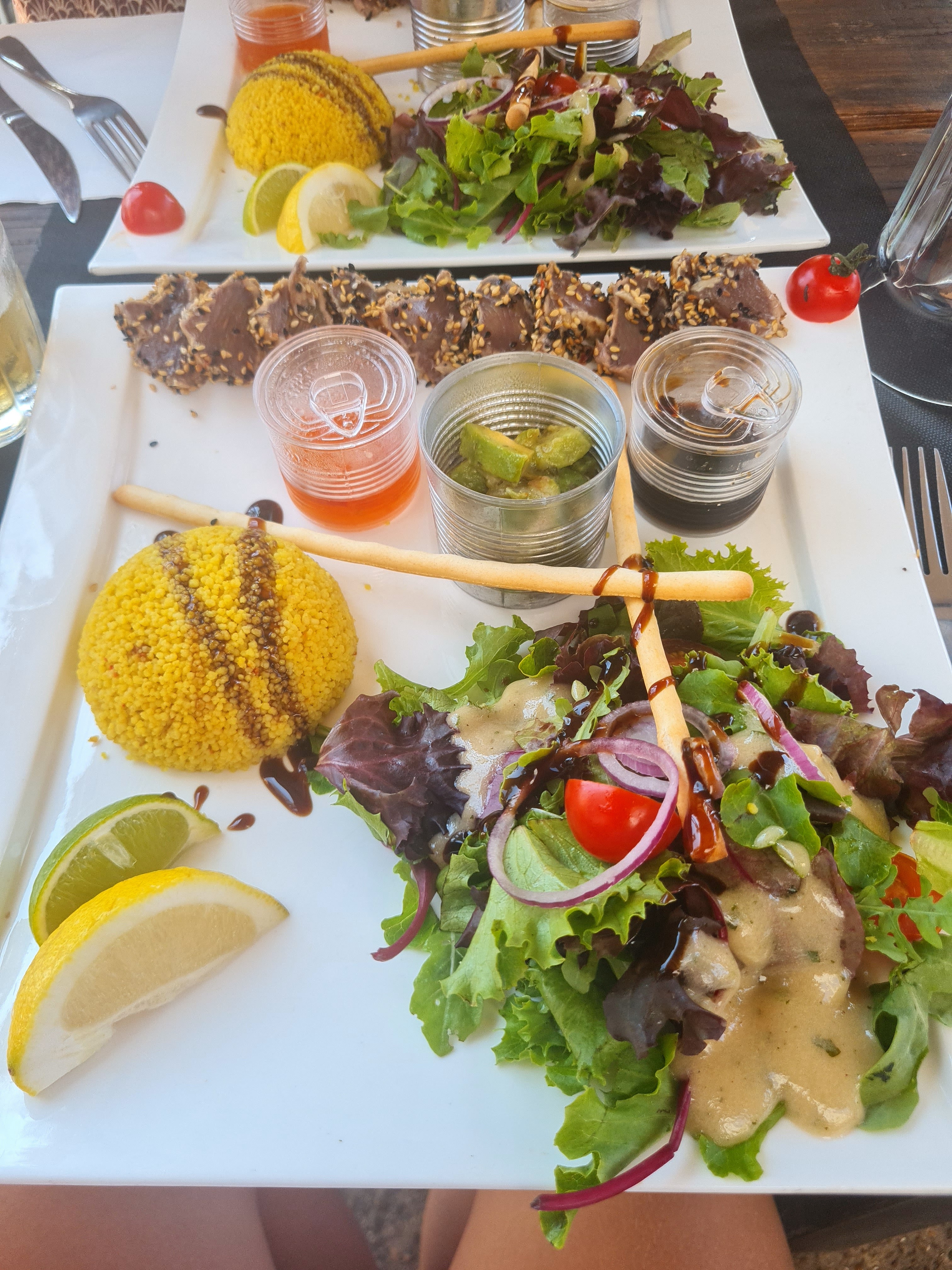 Tataki de thon, cheese burger et crêpe Sarrazin, tout fut très bon malgré beaucoup d’affluence, la gentillesse du service au top