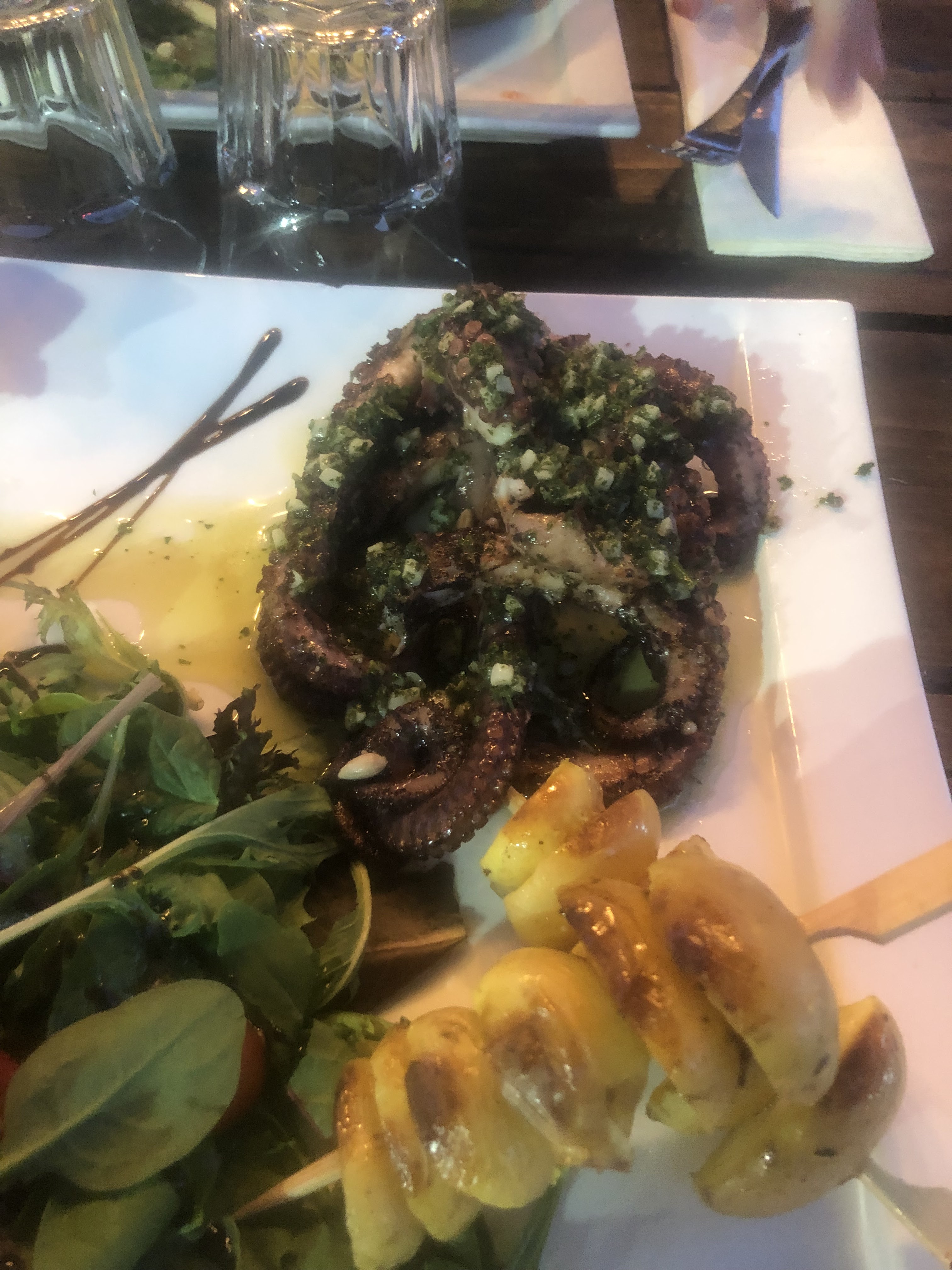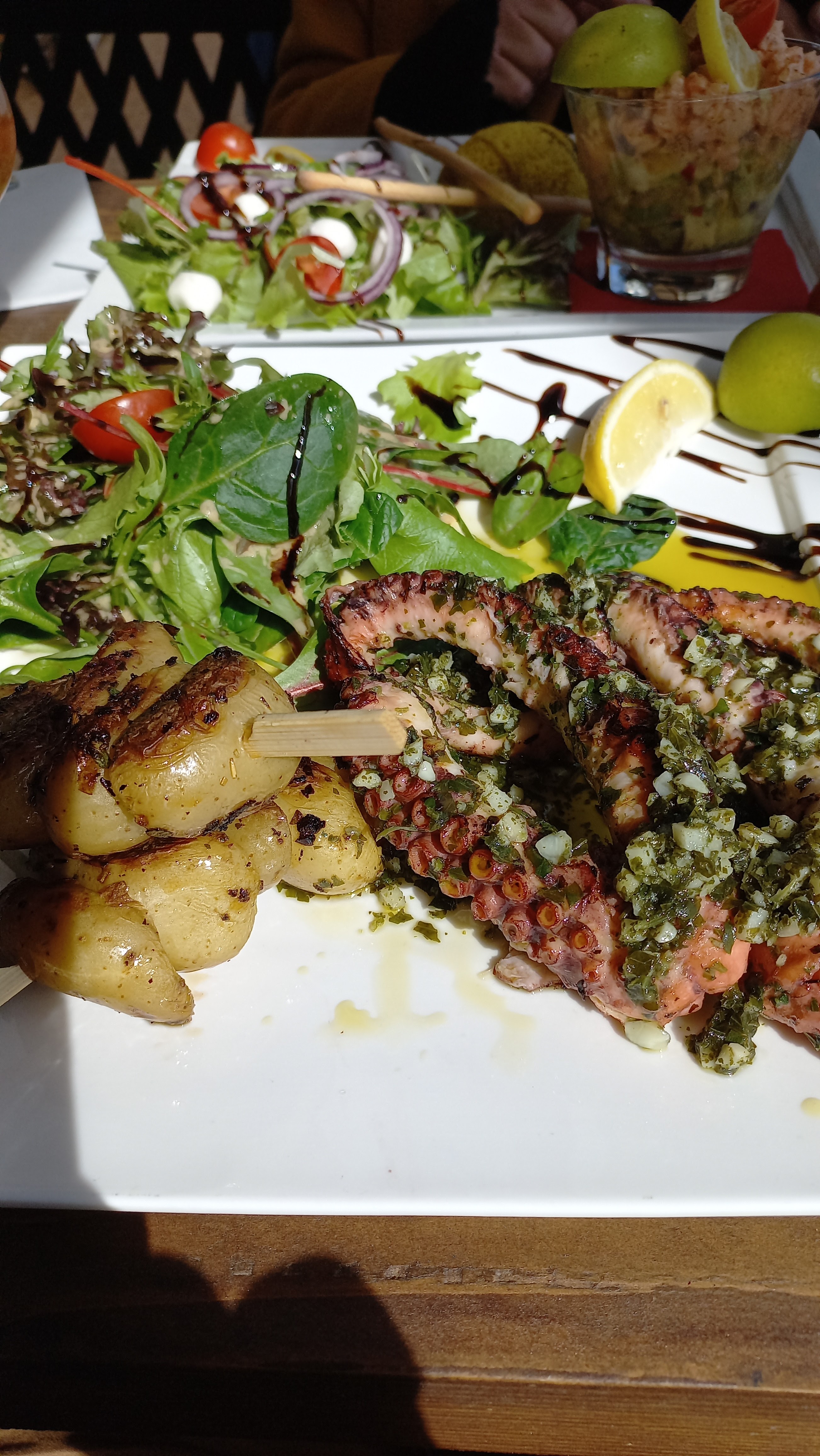 Franchement, le poulpe était excellent ! Rien à dire. Un des meilleurs poulpes que j'ai mangé depuis longtemps. Le seul bémol, qui n'a rien à voir avec la nourriture, est l'état des toilettes, qui ont besoin d'un petit coup de nettoyage.