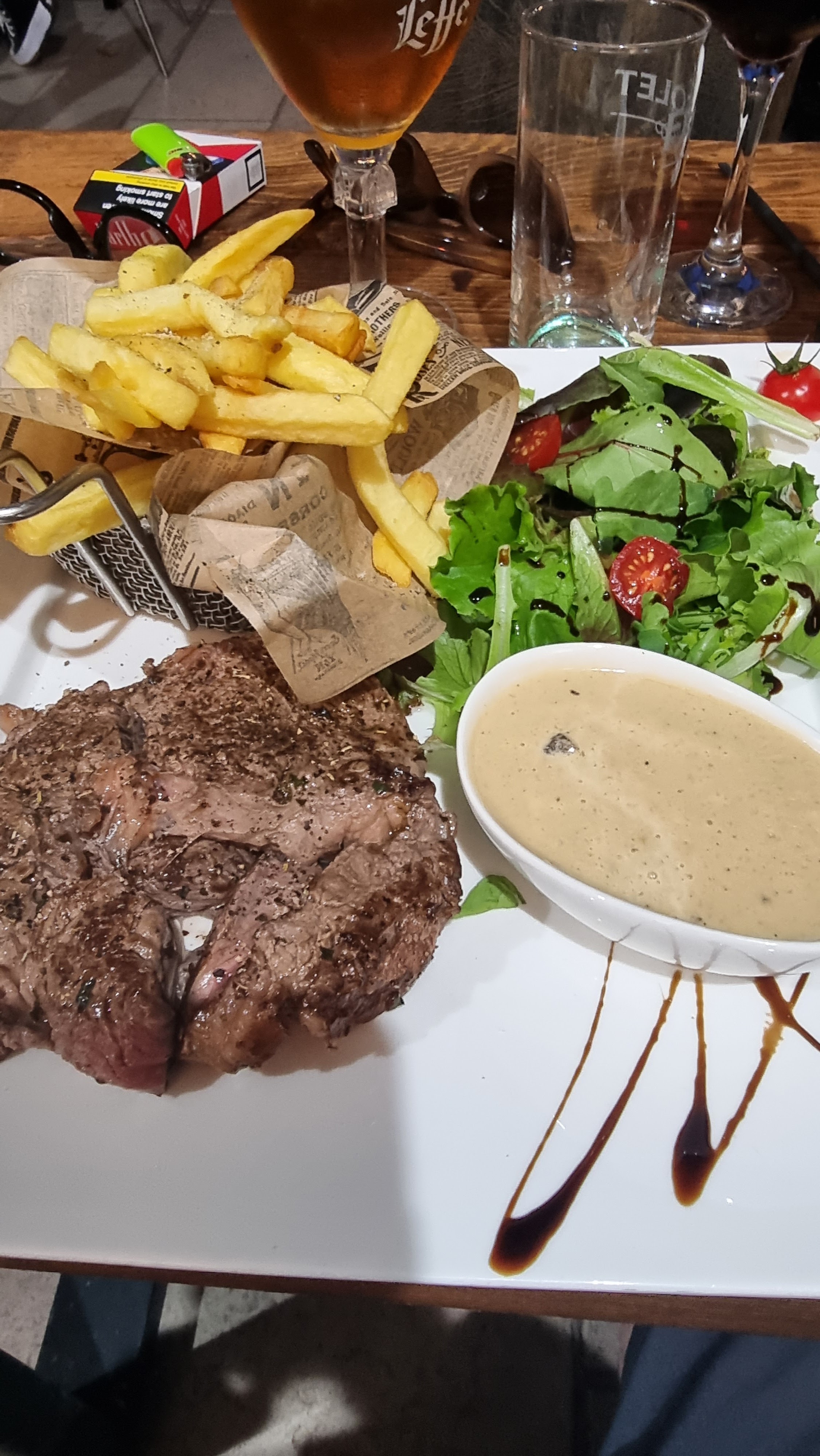 Restaurant top sur la place animée. Nous avons demandé un changement sur la carte, étant végétariens, cela a été fait sans problème. Personnel très bienveillant et toujours avec le sourire, on recommande. Petit plus mais pas des moindres : le steak végétarien est une galette maison, excellente !
