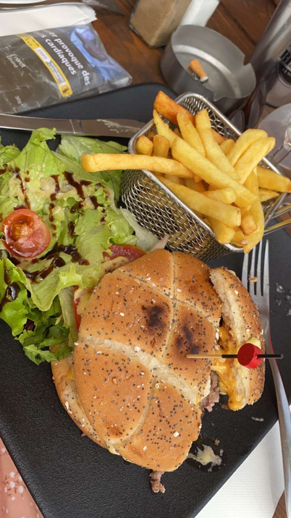 Ayant apprécié la compagnie de l’agréable serveuse, j’ai malgré ça été surpris par l’intrusion de celle-ci durant tout le long du repas du fait de sa sympathie excessive. Son aimable collègue ayant oublié de nous demander la cuisson de nos steak, nous avons moyennement apprécié les burgers pourtant biens mis en avant sur la jolie carte à l’entrée du restaurant. Je n’ai pas vraiment apprécié le goût de la carafe d’eau servie en milieu de repas, me rappelant l’eau des égouts desservie dans la plage centrale de Bandol. Nous n’avions pas eu non plus le choix des glaçons dans le verre de rosé, ce qui ne nous a pas forcément très plu dès le départ. Je ne recommande pas cet endroit, à moins que vous ne vouliez manger une de leur délicieuses salades, qui sincèrement, sont très goûteuses. Bonne continuation et bon courage pour la suite.