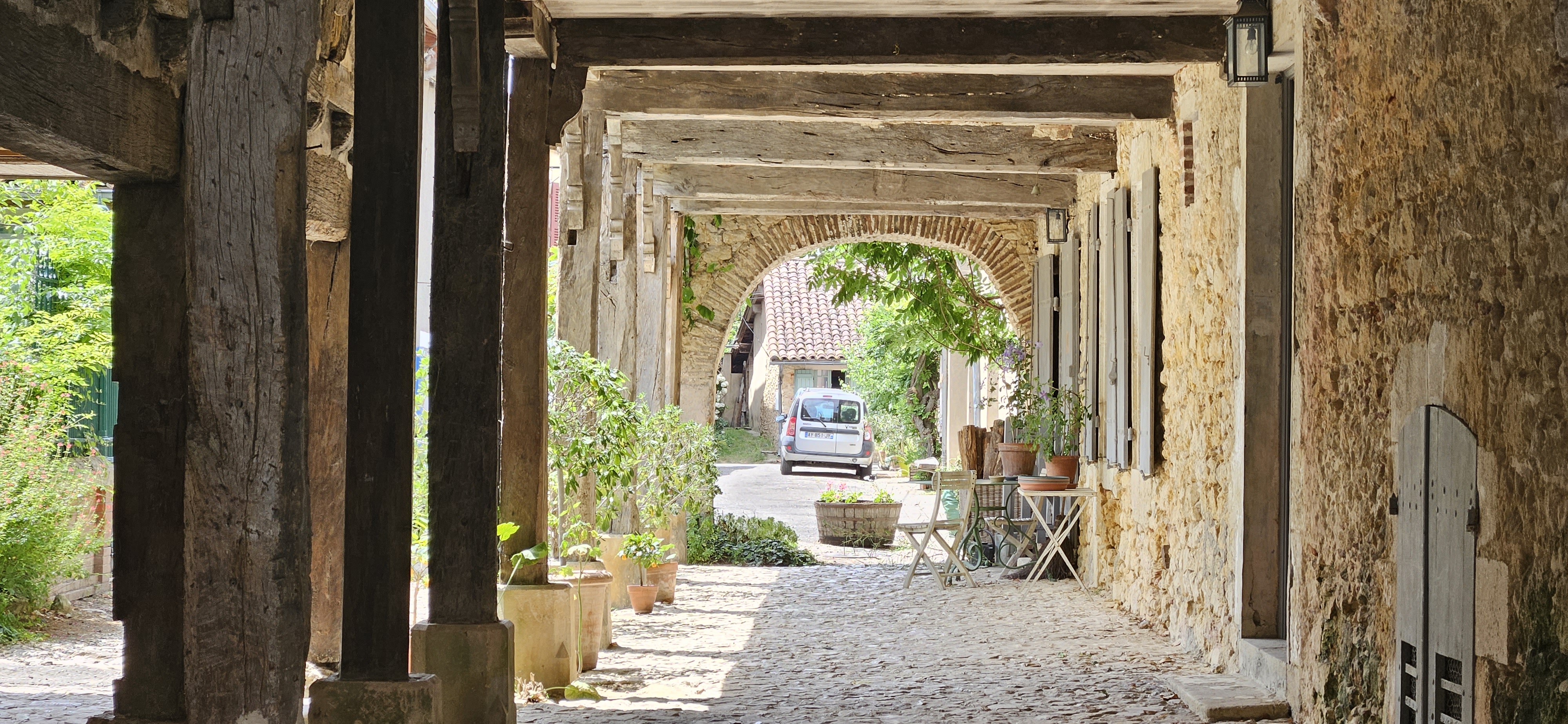 En terrasse, au soleil, au cœur de la bastide, avec un délicieux confit de canard... Que demander de plus ? Service familial avec les sourire. Nous avons adoré