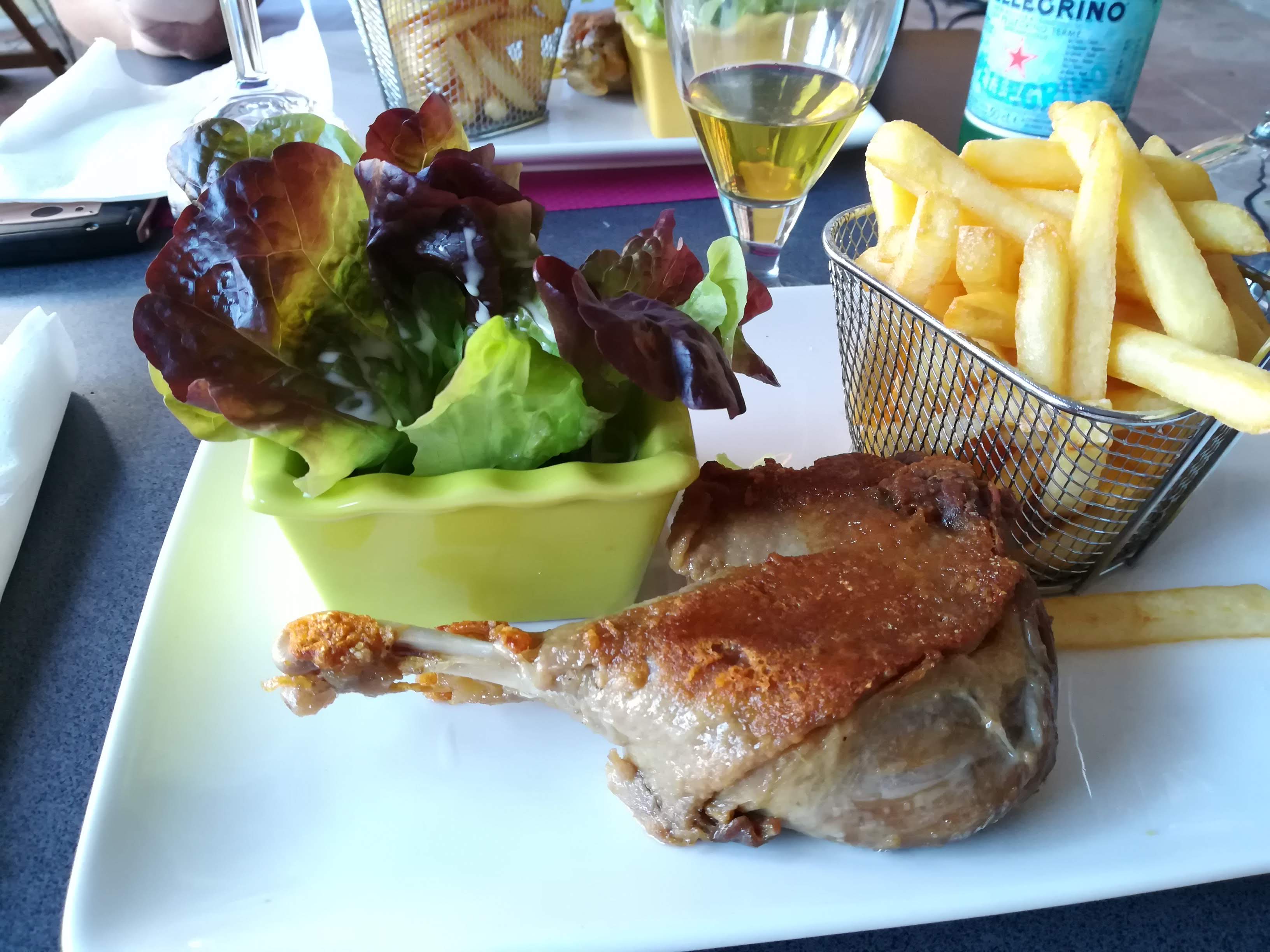 Cuisine très moyenne Le confit de canard est servi sans sauce et avec des frites a priori non maison. Malgré la présence d’une salade le plat est très sec.