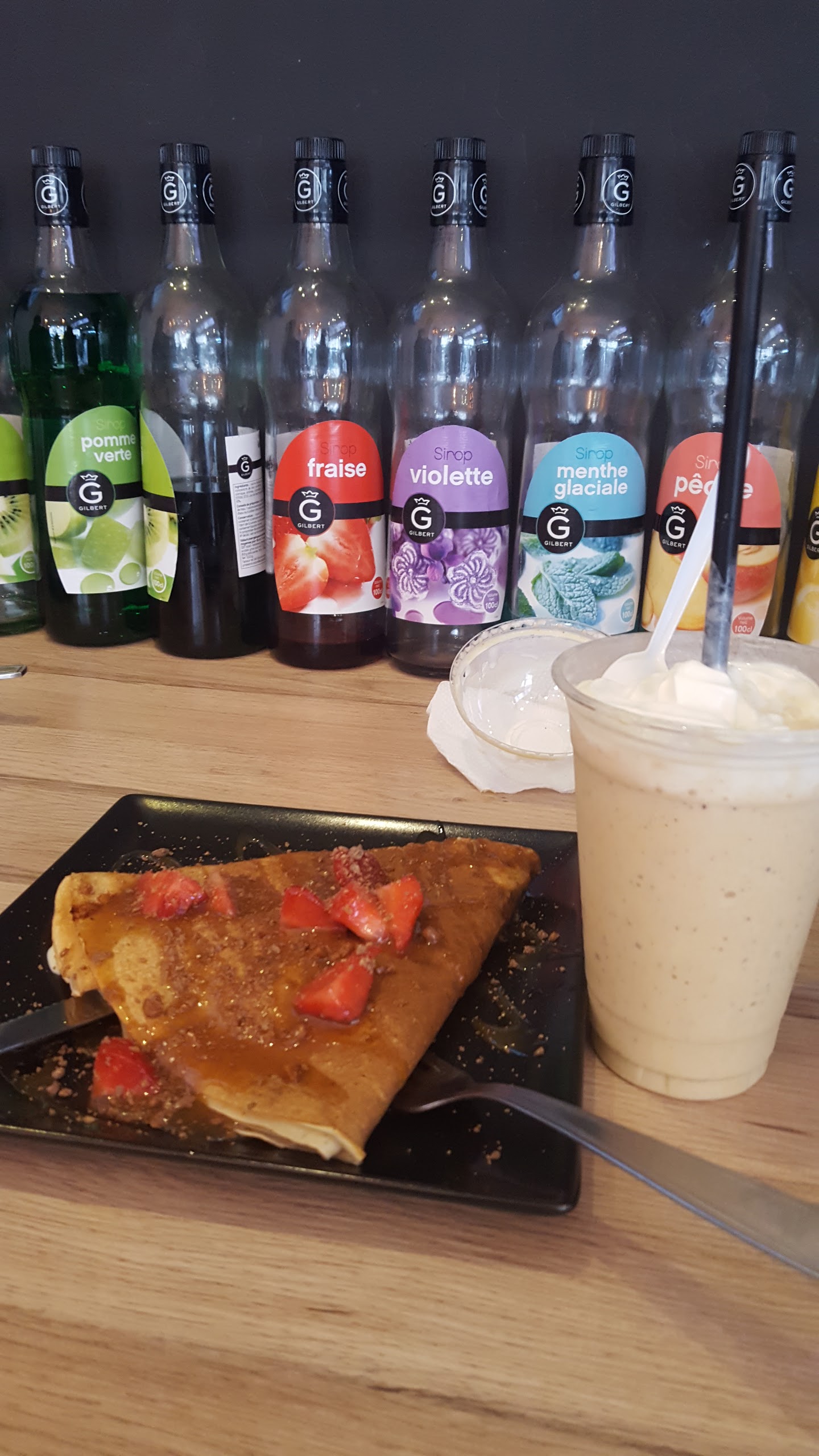 Commandé sur délivroo. Les crêpes salé étaient fades . Et les crêpes sucrées dégoulinante de faux caramel pas bon du tout au goût. Rien de positif à dire malheureusement.