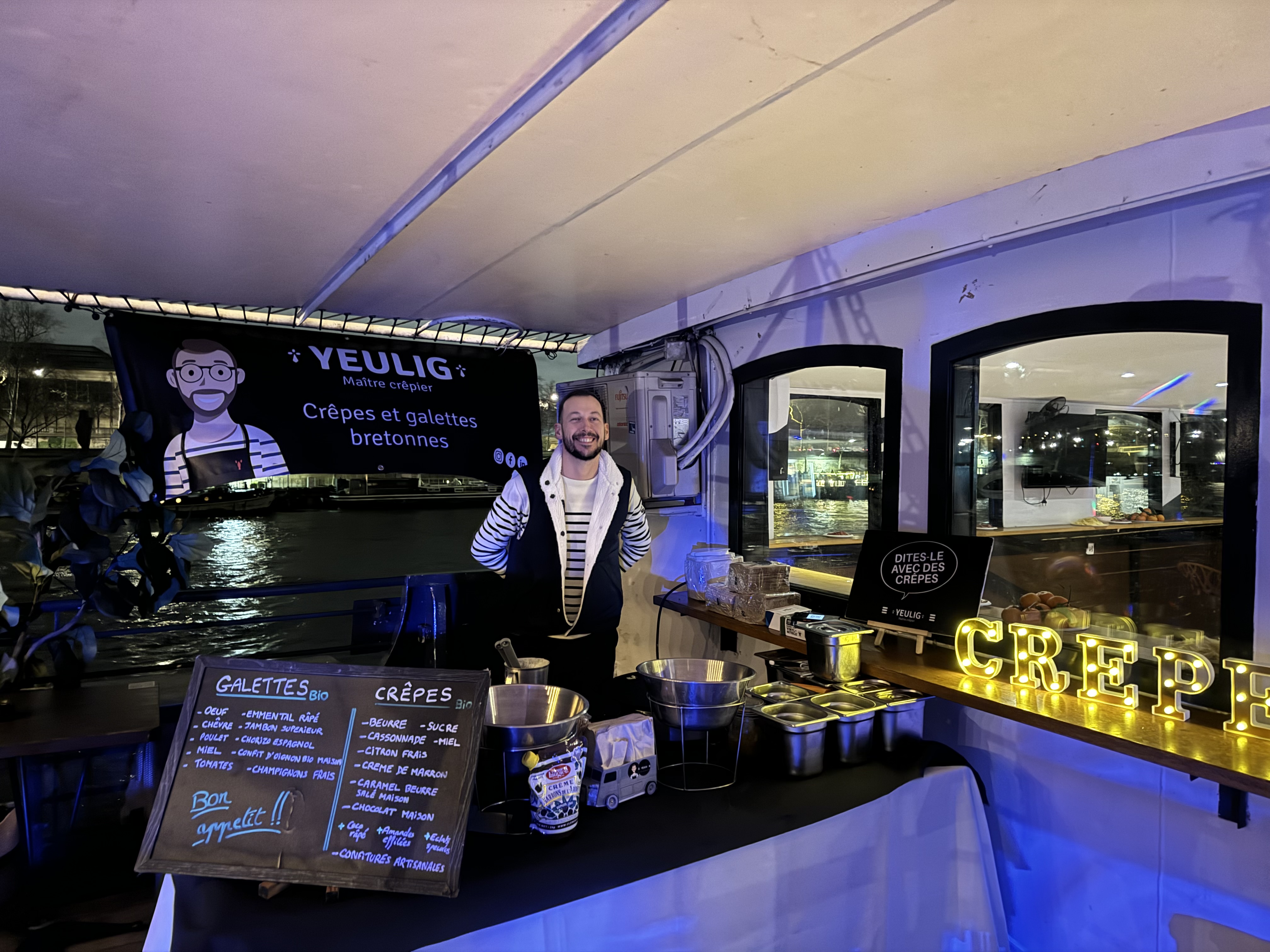 arnaud/yeulig est un crêpier hors pair que je recommande avec plaisir, mais avant tout un humain très bon et agréable ❤️ je vous souhaite de le croiser et d’être servi par celui-ci de bon cœur. il a sur la main le cœur et de bonnes crêpes . merci arnaud